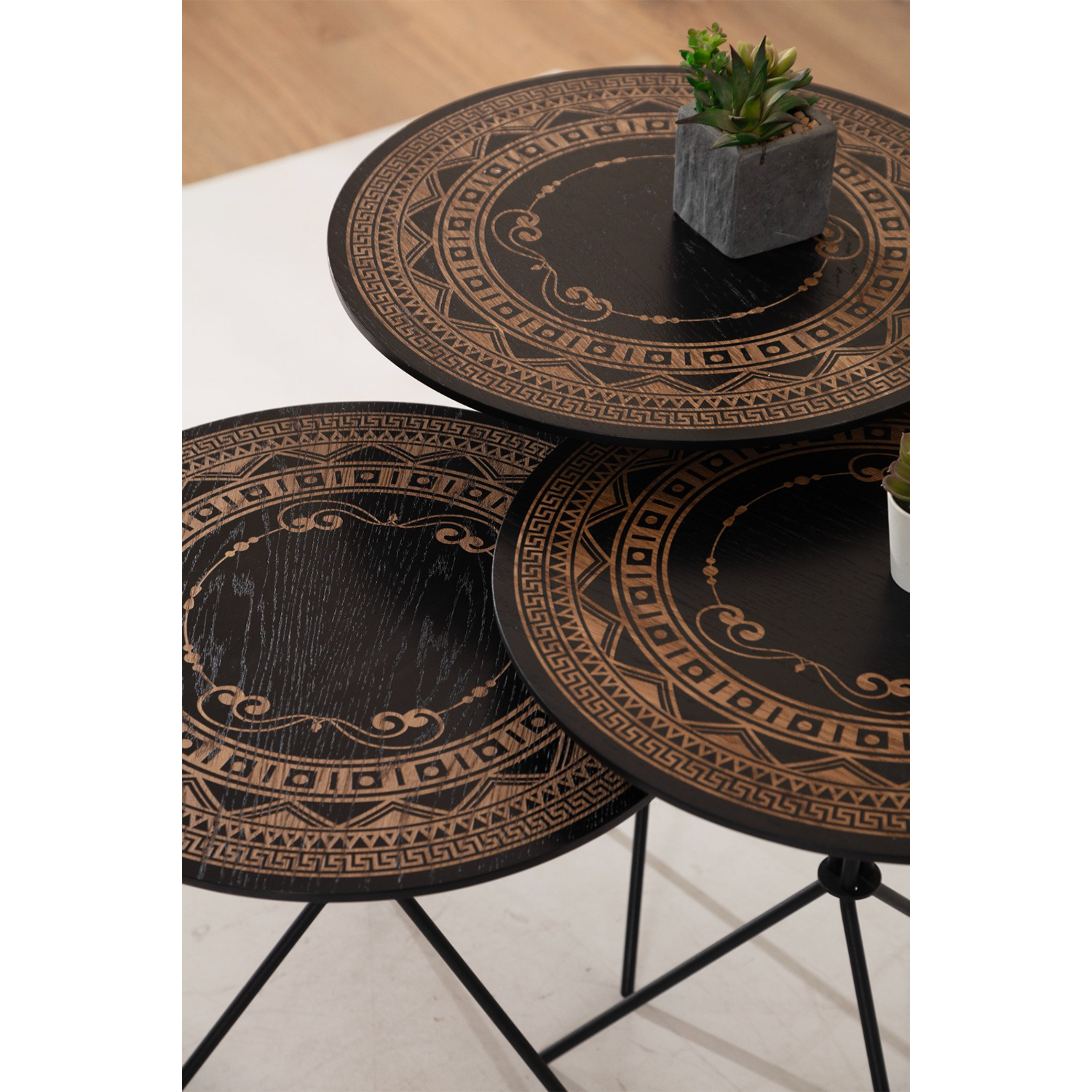 Etnik Zigon, geleneksel motiflerin modern yorumunu yansıtan özgün tasarımıyla yaşam alanlarınıza karakter katan özel bir sehpa setidir. Etnik desenlerinin zarafeti ile modern çizgilerin buluştuğu bu ürün, mekanınıza farklı bir hava katar.