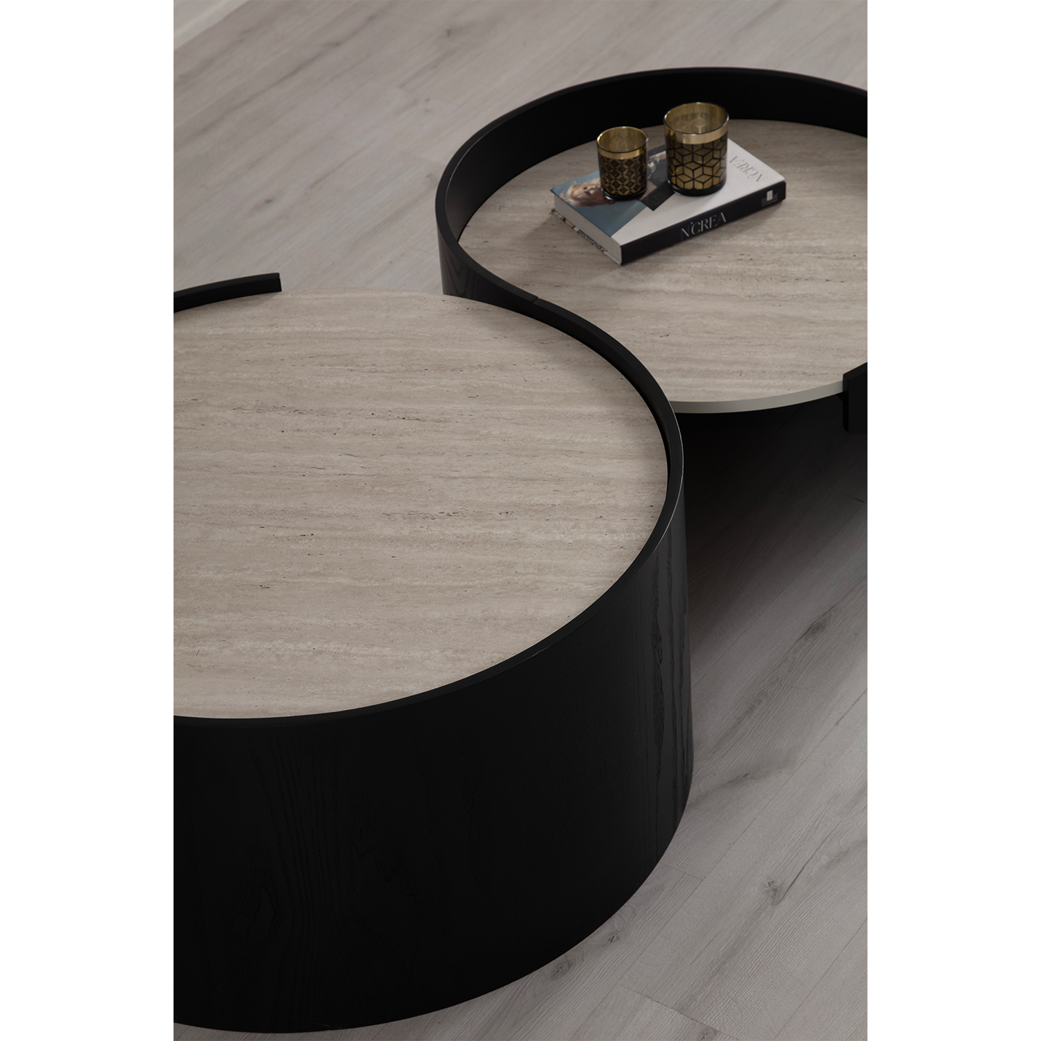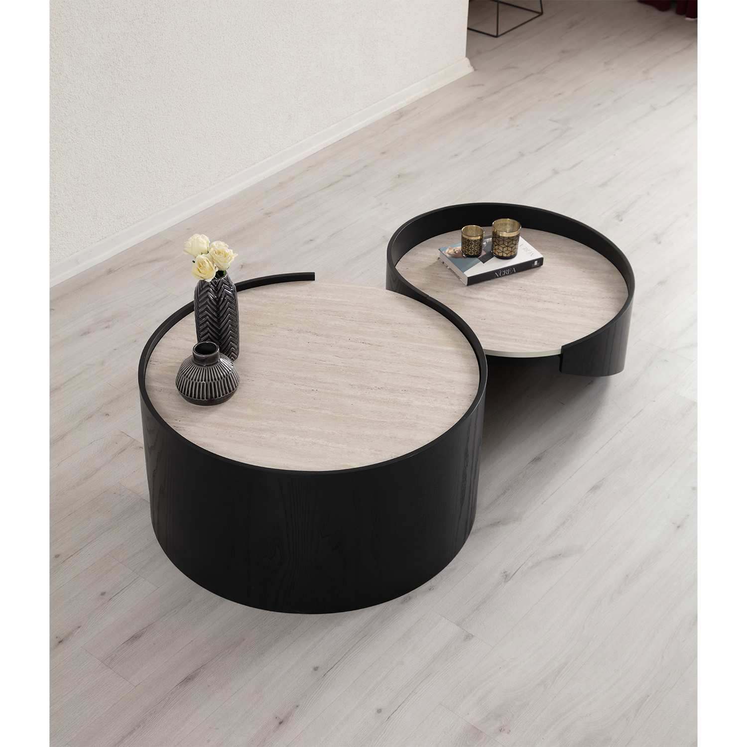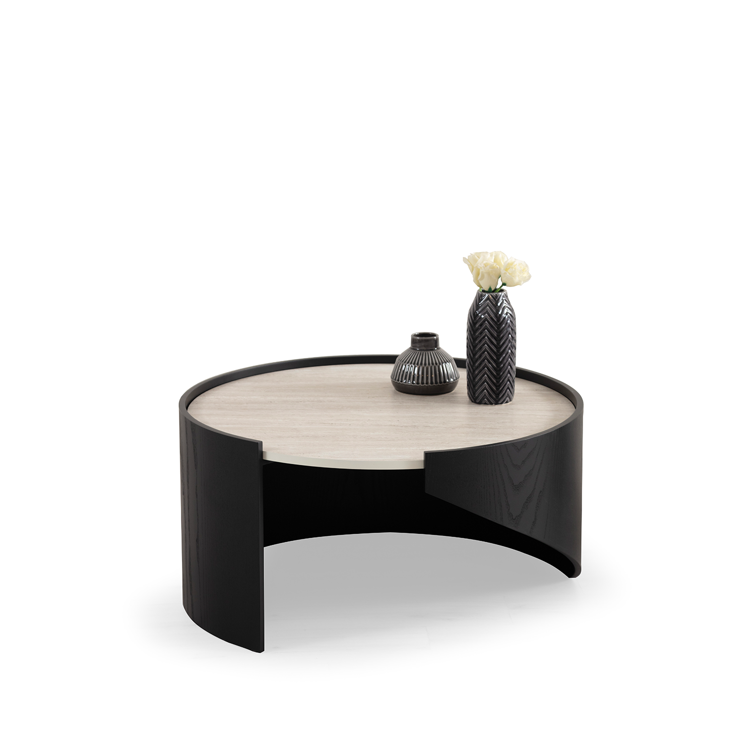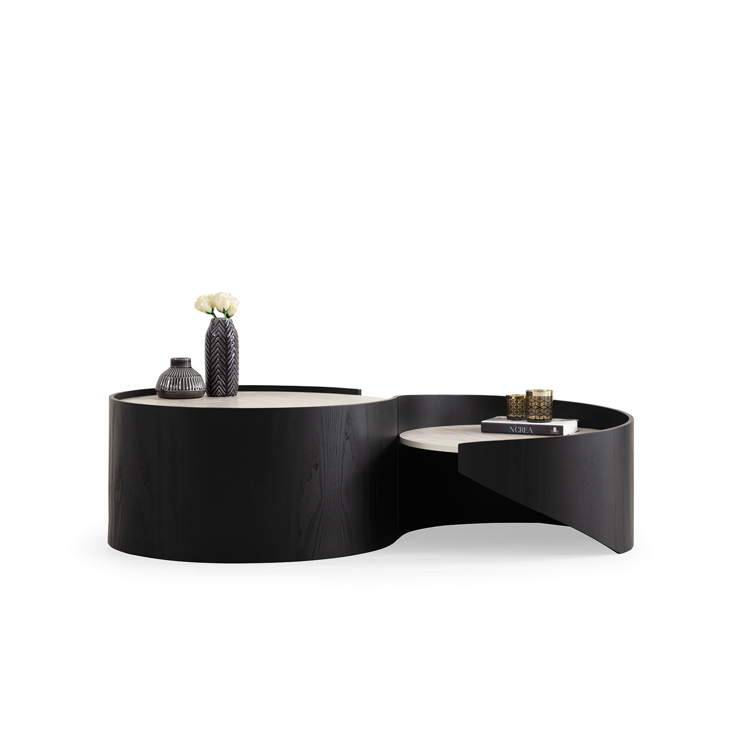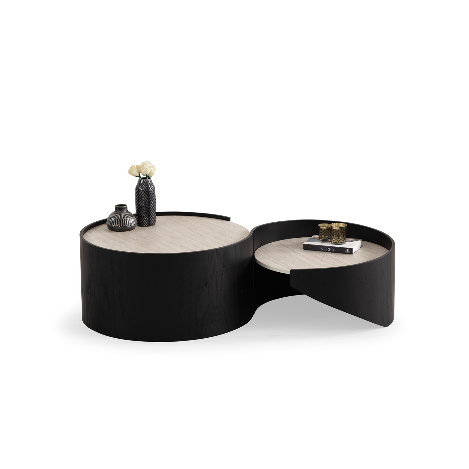 Atlantis Siyah Orta Sehpa, modern tasarımın keskin çizgilerini zamansız şıklıkla buluşturan özel bir parçadır. Mat siyah gövdesinin sofistike duruşu, açık tonlu üst yüzeyle birleşerek mekâna güçlü bir kontrast ve lüks bir atmosfer kazandırır. Tek parça gibi görünen akıcı formu, hem dekoratif hem de fonksiyonel kullanımı bir araya getirir. Yuvarlak formun zarafetini keskin kesit detaylarıyla modern bir mimari dile dönüştüren bu sehpa; salonunuzda sadece bir tamamlayıcı değil, aynı zamanda dekorasyonun en dikkat çekici ögesi olmaya adaydır.