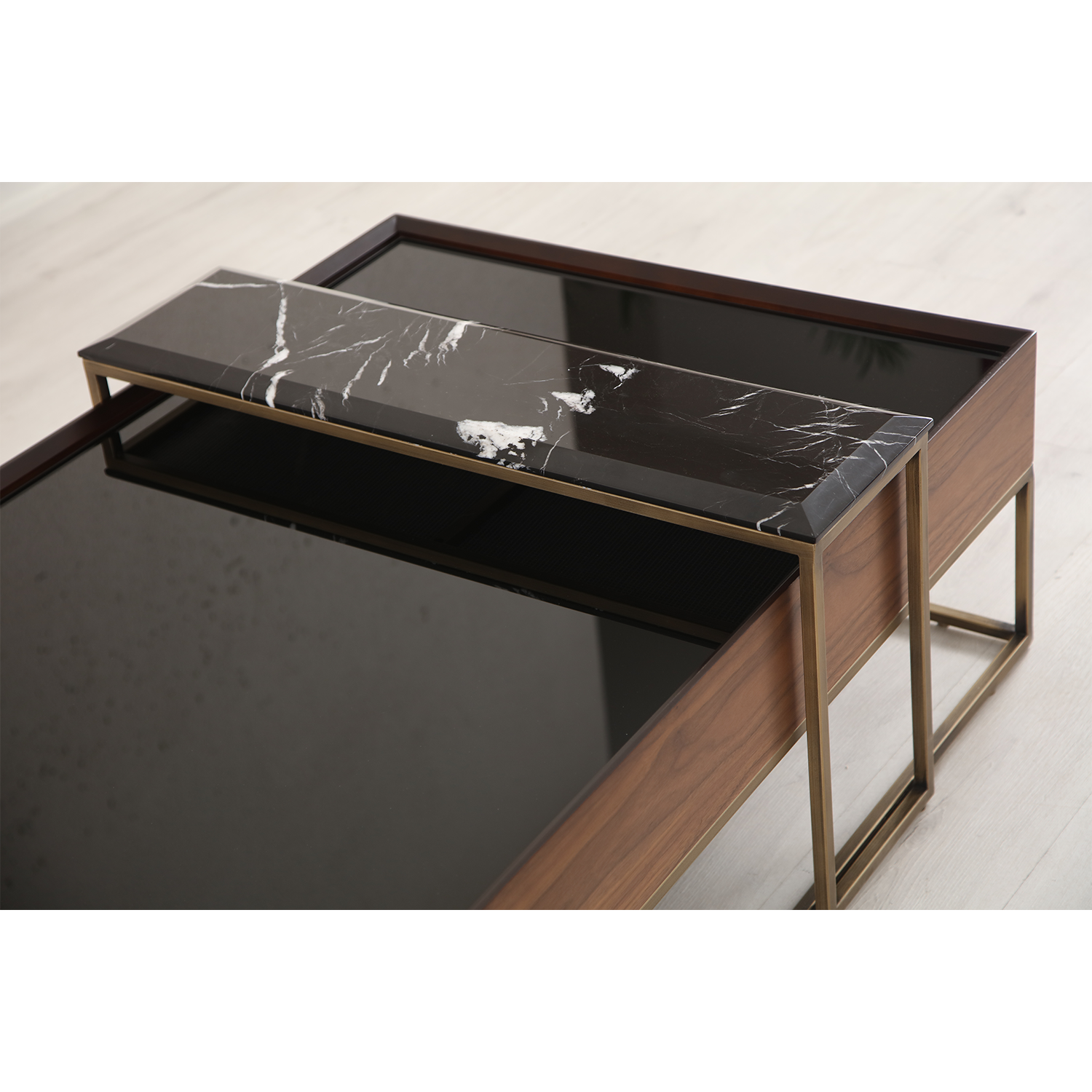 Crown Orta Pirinç ile oturma odanızda hem pratik hem de lüks bir çözüm yaratın. Kahve keyfinizden dekoratif objelerinize kadar her şeyi şık bir şekilde sergileyebilirsiniz.