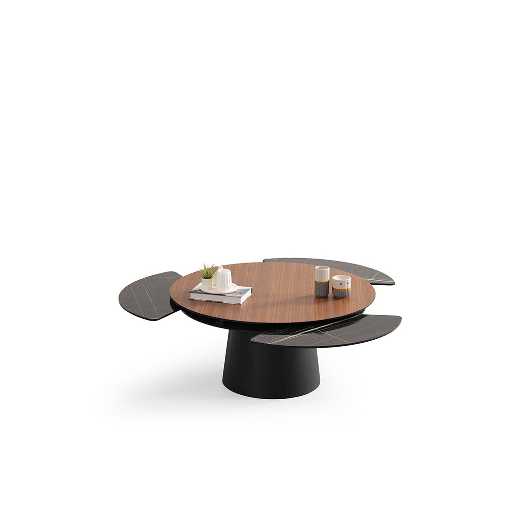 Sense Orta Sehpa, doğal ahşabın sıcaklığını modern yaşam alanlarına taşıyor. Ceviz kaplaması ile lüks bir görünüm sunarken, işlevsel tasarımı sayesinde günlük kullanımda maksimum konfor sağlıyor. Oturma odanızın merkezinde zarif bir odak noktası yaratın.